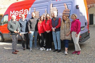 Im Schlosshof erwartet die Besucher das HVV-Mobil. Werkstudentin Lina Danner und Elisa Schmedt, die sich um Produkte der Hamburger Hochbahn kümmern, stehen für Fragen rund um das Deutschlandticket, die Switch-App oder auch das Seniorenticket, das es für Hamburger in Kürze geben wird, zur Verfügung.